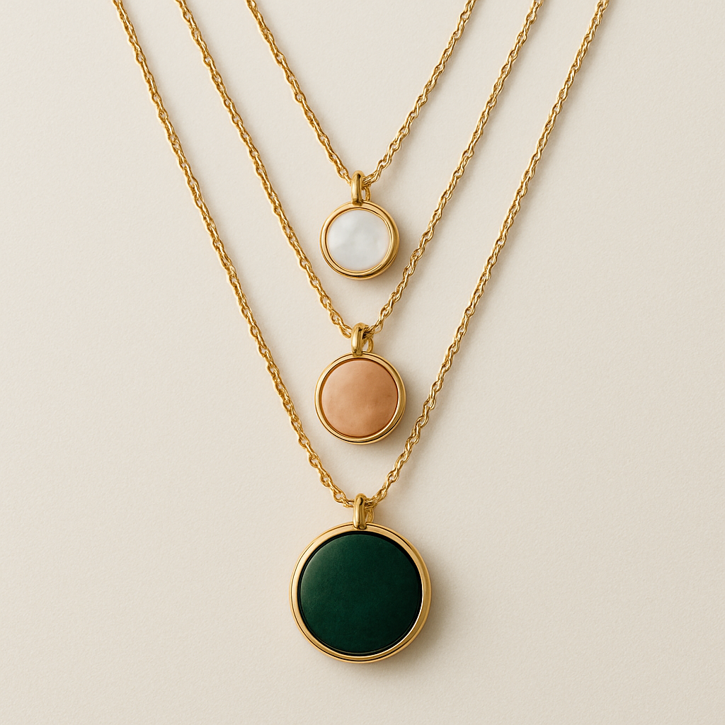 A 3 necklace set that are different sizes and color but the chains are the same color