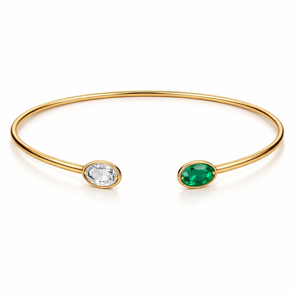 Simple gold choker with two oval middle size stone at the end front , modern style