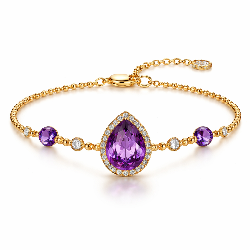 A women's bracelet made of gold. 根據圖片紫色墜子,設計貴氣的珠鍊, modern style