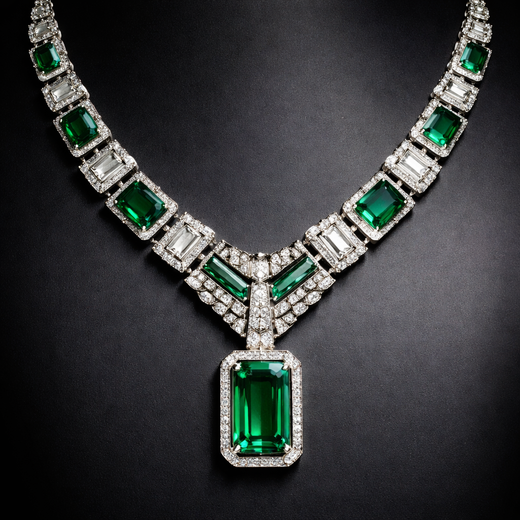 A beautiful necklace with rectangular shaped gems, art_deco style
