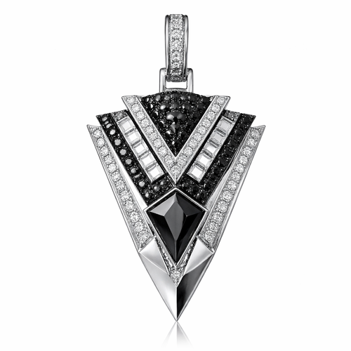 Create a geometric and edgy shapes of pendant for men of white and black diamonds of white background