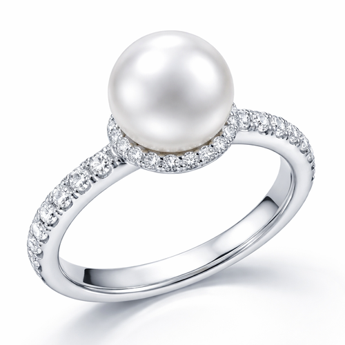 I want a single white pearl raised a little higher and secured to the white band with moissiante down the band