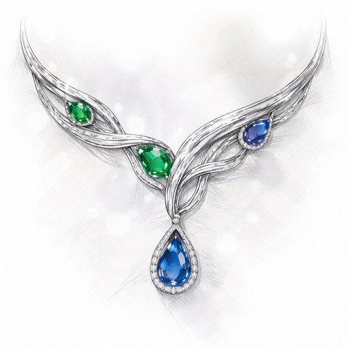 The necklace background change with a shallow depth of field that subtly white the background. Sem to sem image sketch...