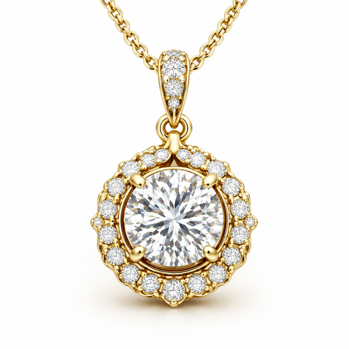 A classic women's pendant made of gold with diamond stones suitable for engagement