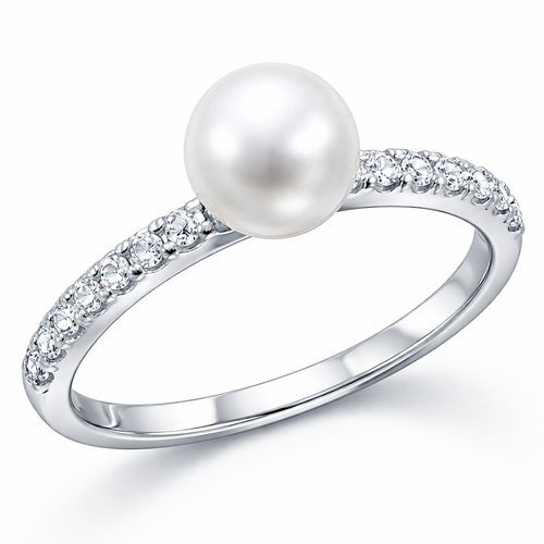 I want a single white pearl raised a little higher and secured to the white band with moissiante down the band and a lit...