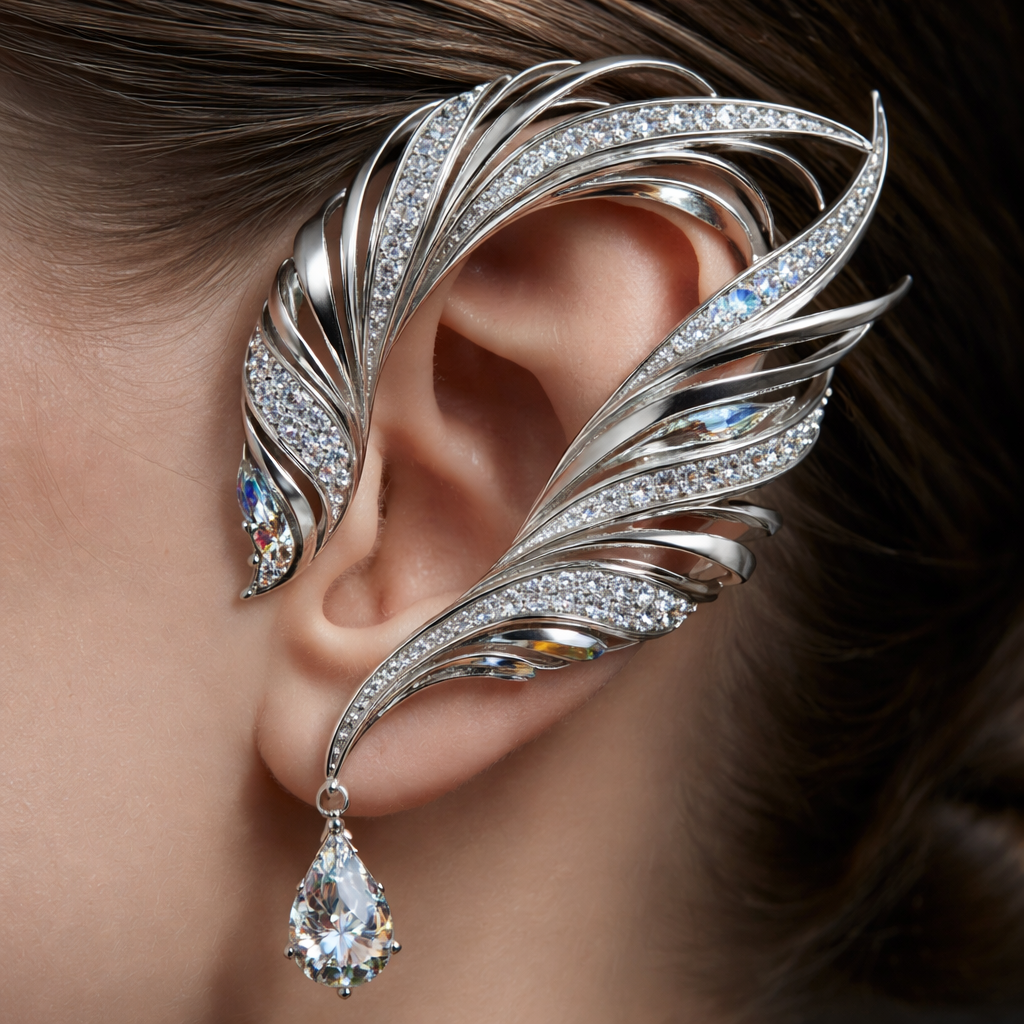 Amazing architecture shape geometry Cuff "The Wind" Silver, moissanites. Individually made to fit the ear,