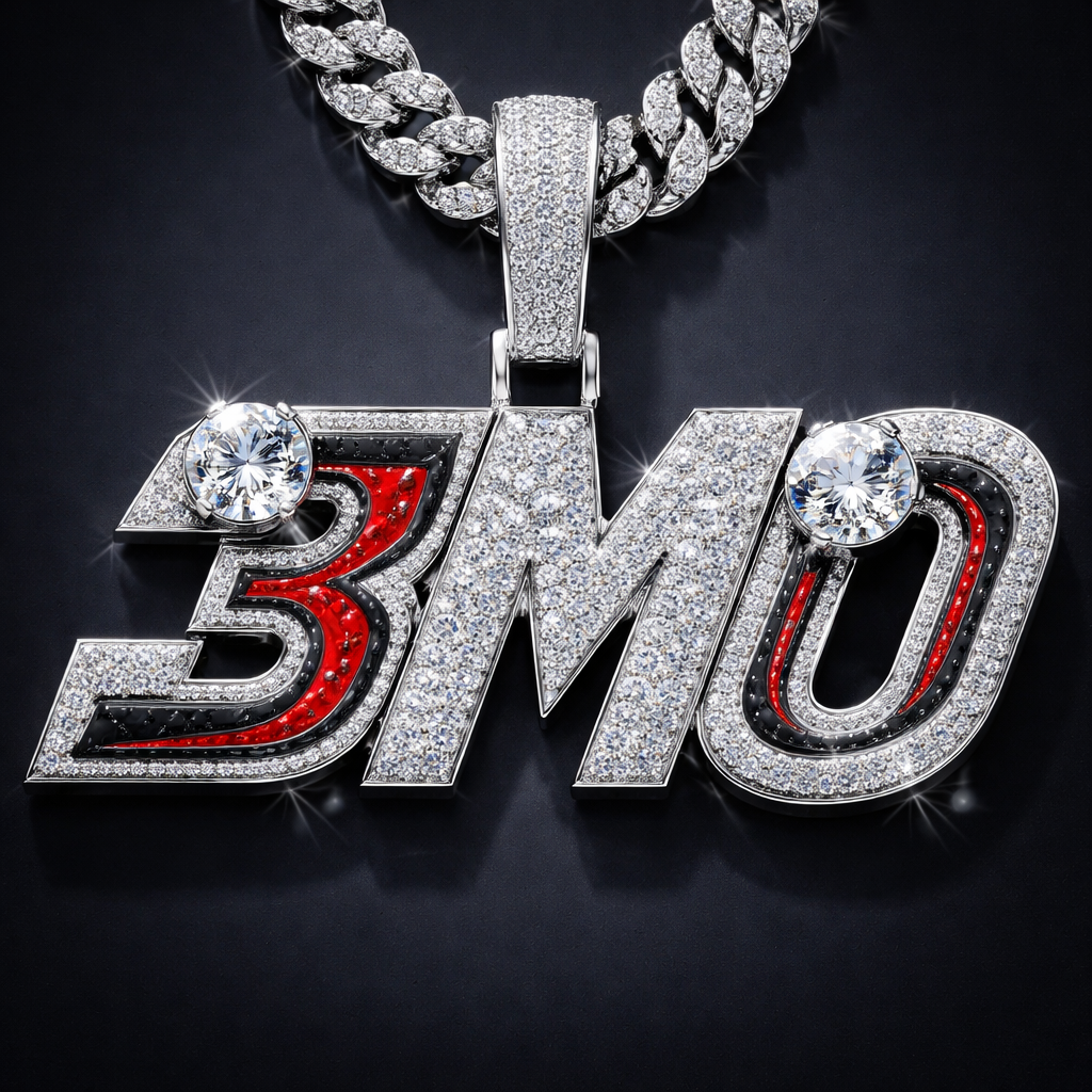 3M0 racing font , big diamonds , pendant style