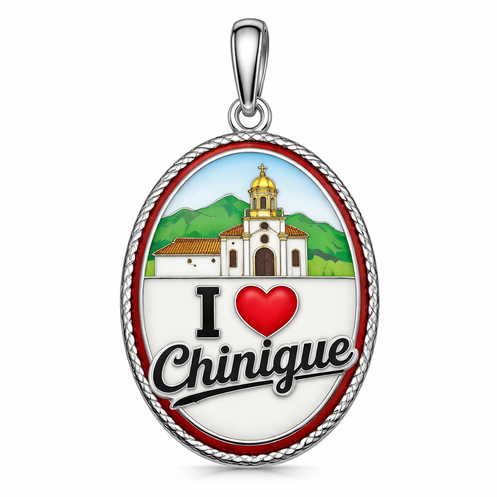 Oval pendant charm silver 925 with I love Chinique with enamel churchfinish