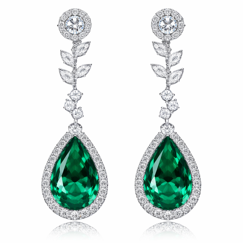 Hãy tạo một đôi hoa tai ngọc lục bảo dài hình giọt lệ kèm với đá cubic trắng trông sang trọng trẻ trung