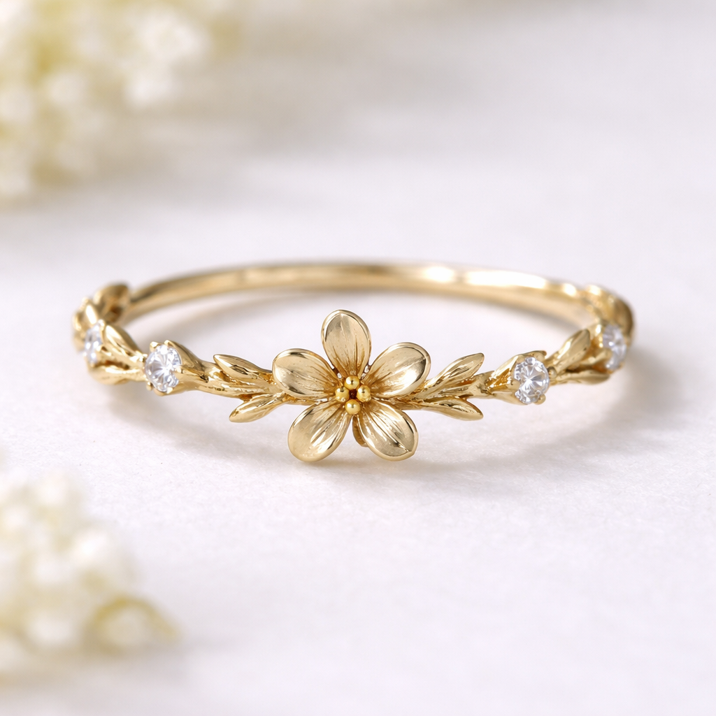 I want a floral ring that only has four small diamonds, spaced out along the band