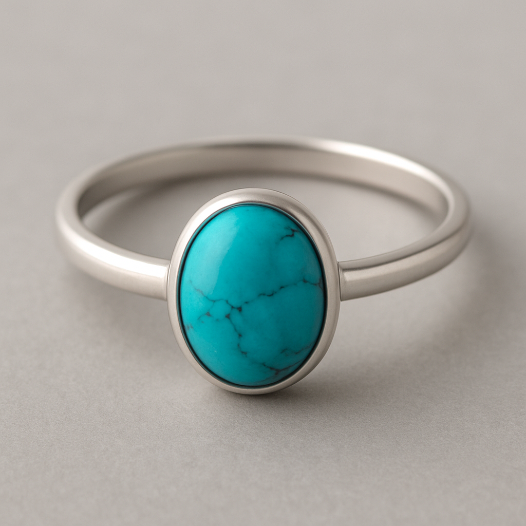 Turquoise cabochon on silver ring, minimalist style