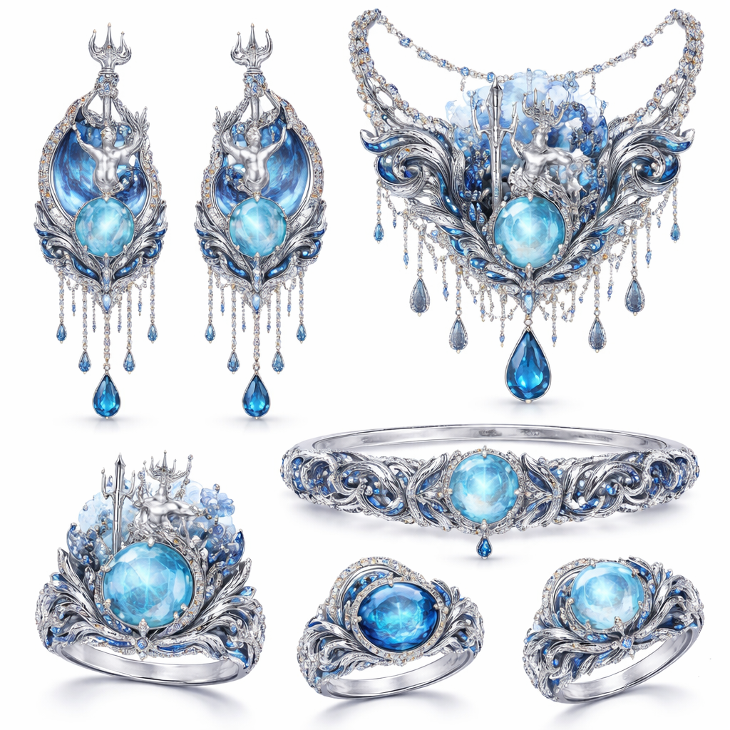 I heard that Neptune makes it rain! 😍 As a jewelry designer, I want to draw inspiration from this for a complete collection of earrings, necklaces, rings, and bracelets that combines the beauty of Neptune with the beauty of diamonds.