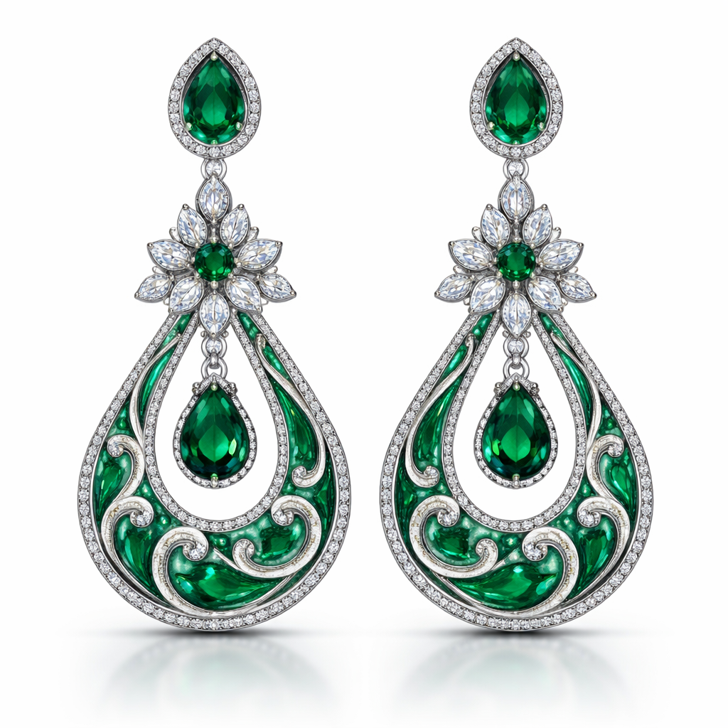 A modern women's ring made of rose gold with emerald stones suitable for formal