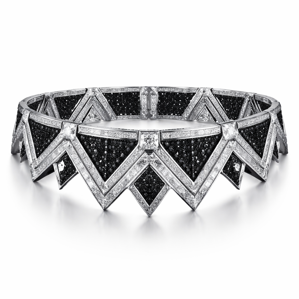 Geomatric choker for men white and black diamonds of edges shapes
