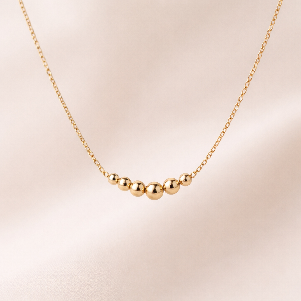 A minimalist women's necklace made of gold. I want a necklace with this gold things on the photo that i uploaded.beads elegant
