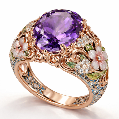 A beautiful amethyst on a beautiful Asian inspired ring