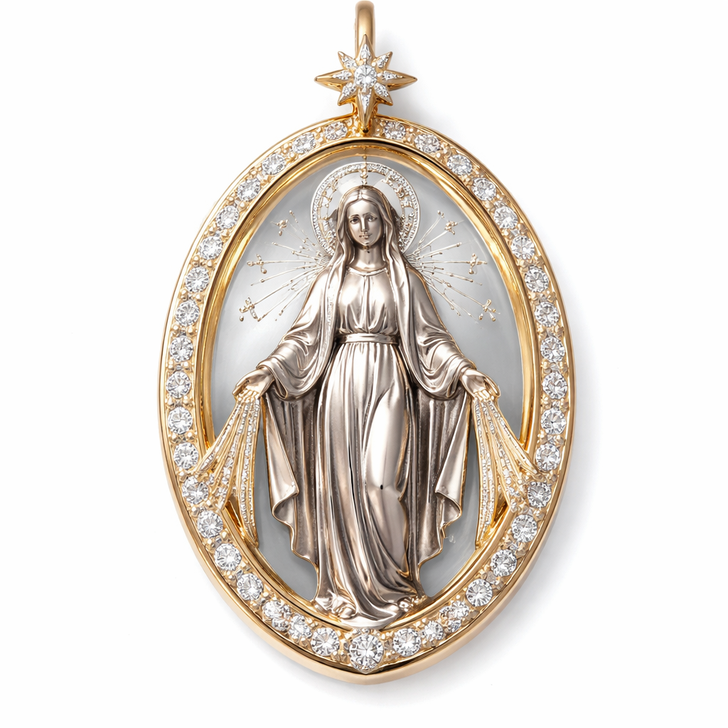 Create a luxury jewelry collection image for a brand named "Selene Paris". Collection name: "SELENE — Lumière Première"...