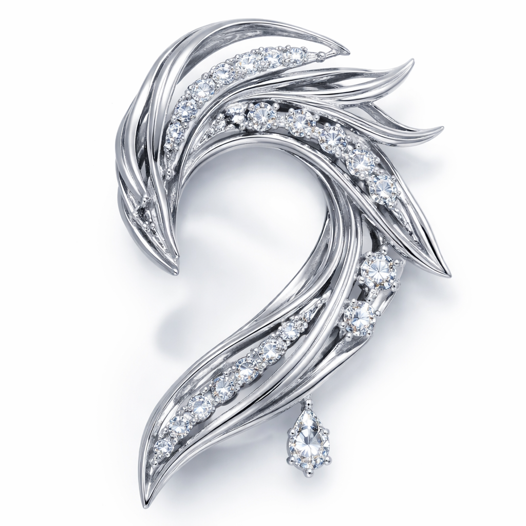 Amazing architecture shape geometry Cuff "The Wind" Silver, moissanites. Individually made to fit the ear, in white background