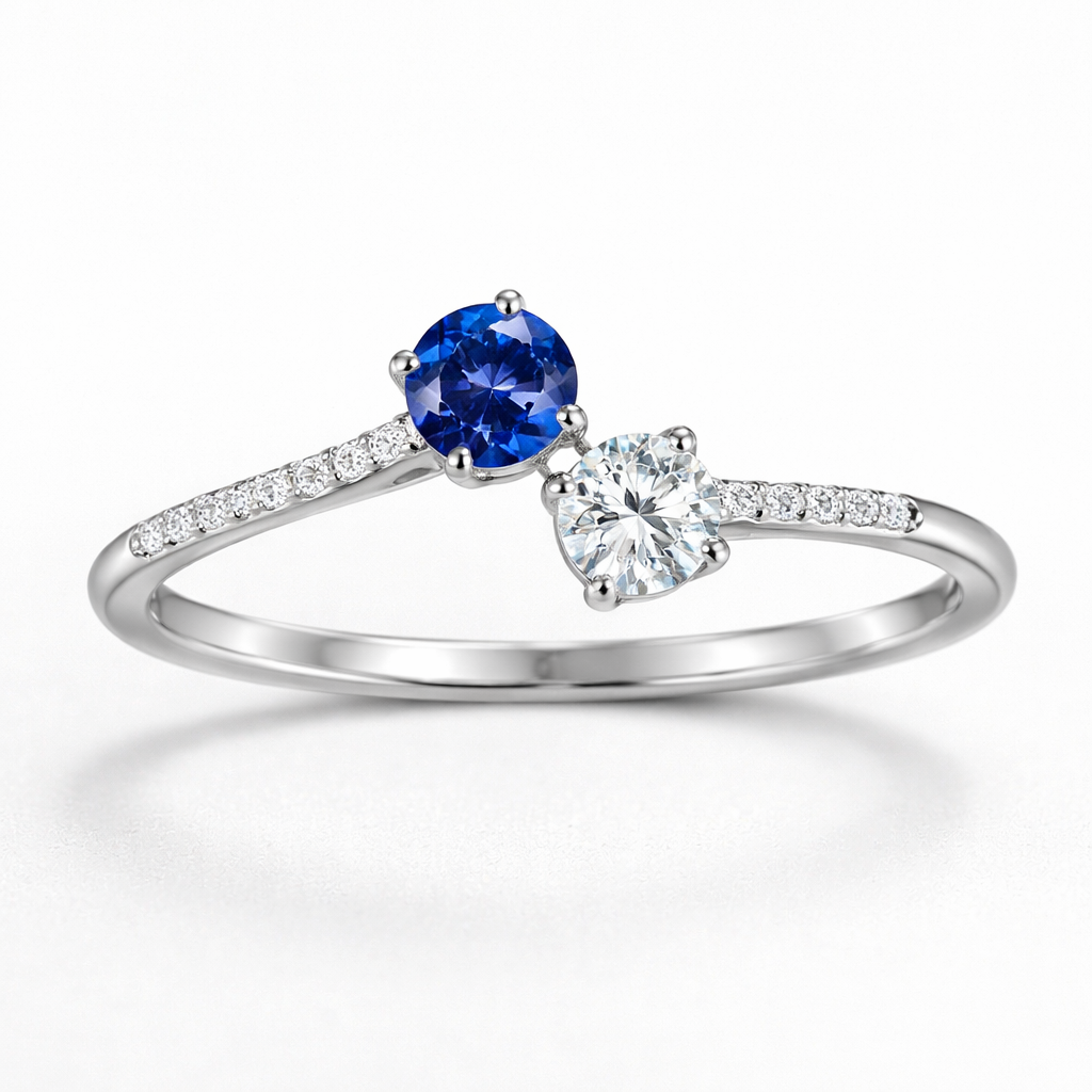 bague saphir à nos doubles avec diamants , minimalist style