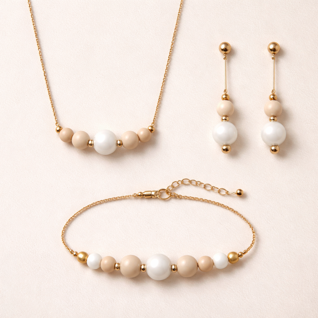 Necklace earring bracelet set using beads and marbles , minimalist style