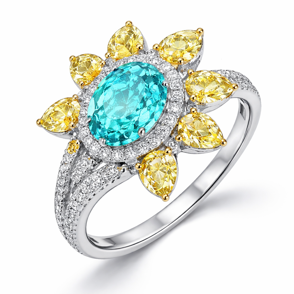 A women's ring. 7粒水滴小黃鑽石和1粒40份帕拉伊巴, modern style