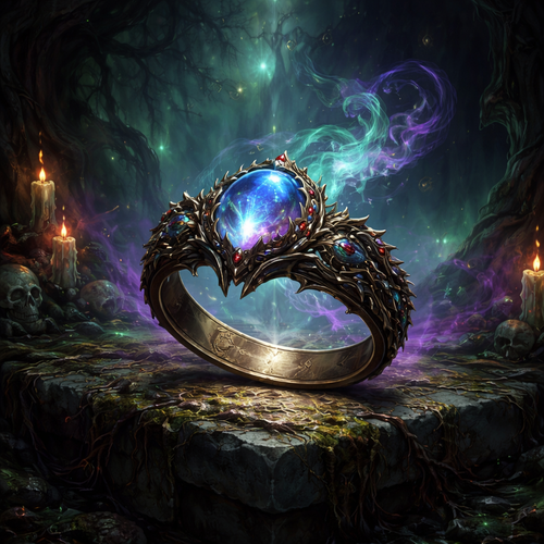 A beautiful enchanted ring with an enchanted background that might be cursed