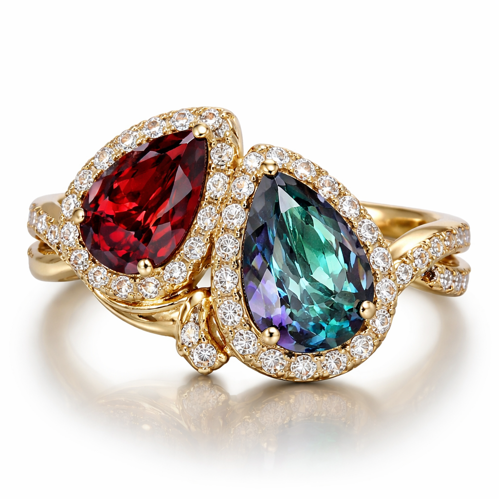 A modern, feminine ring design crafted from high-quality stainless steel with a sleek polished finish, featuring a spark...