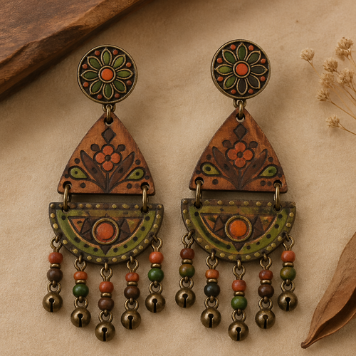 Indian earrings . Refinement: hacerlo menos elegante con color marrón verde y naranja