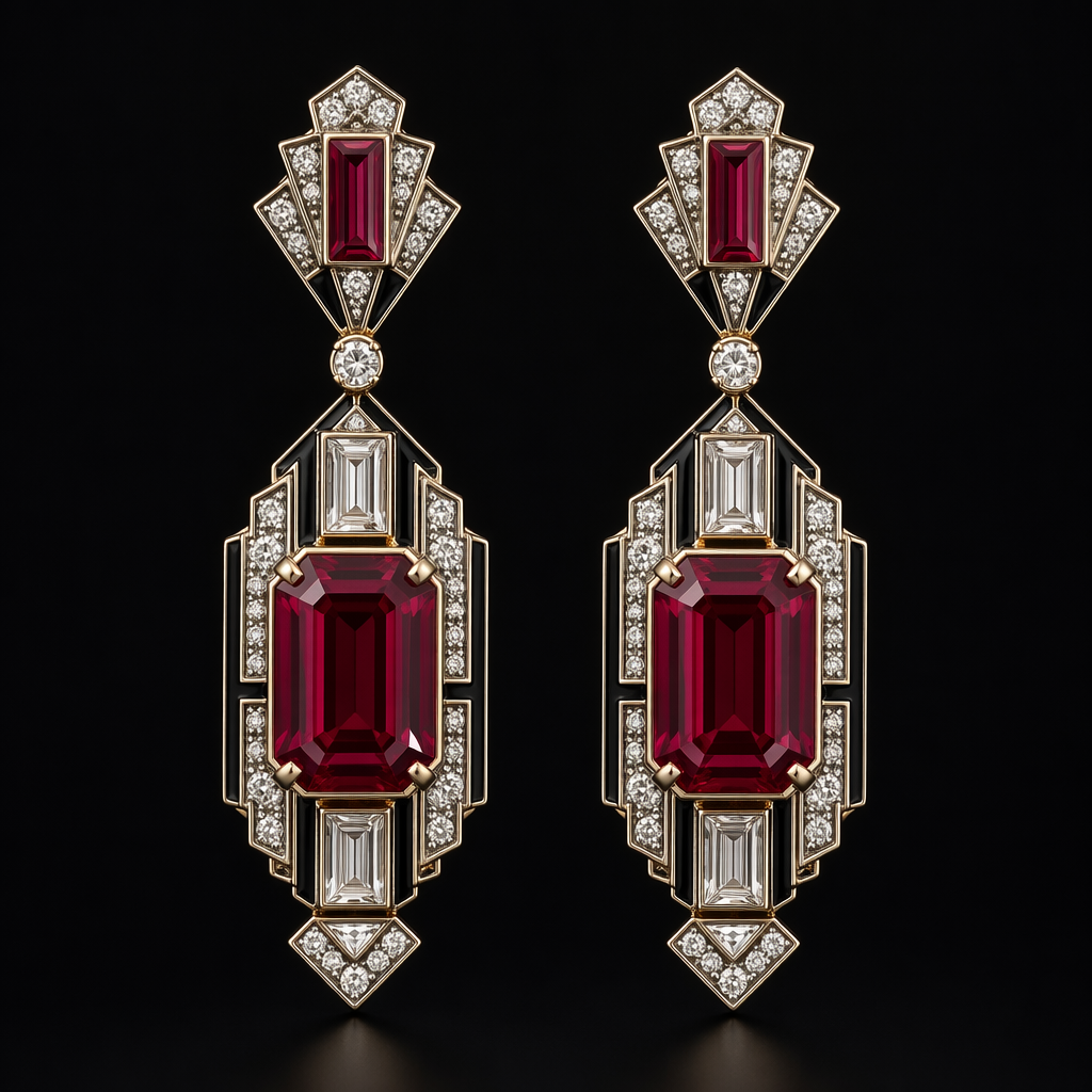 A art deco women's tiara made of titanium with emerald and turquoise stones suitable for party