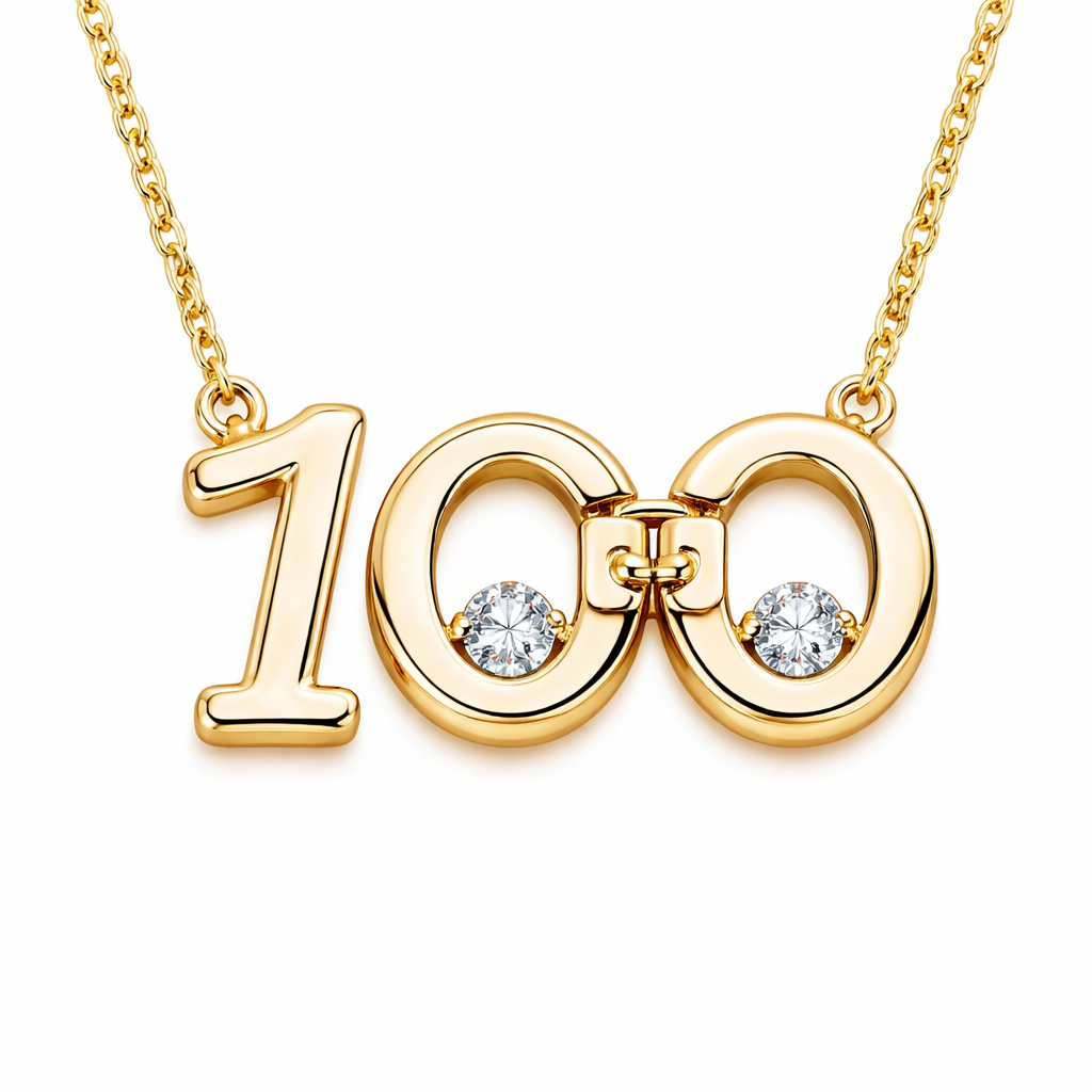 Re do the previous design. Incorporate 100 as the handcuff and have a diamond in the center of each handcuff
