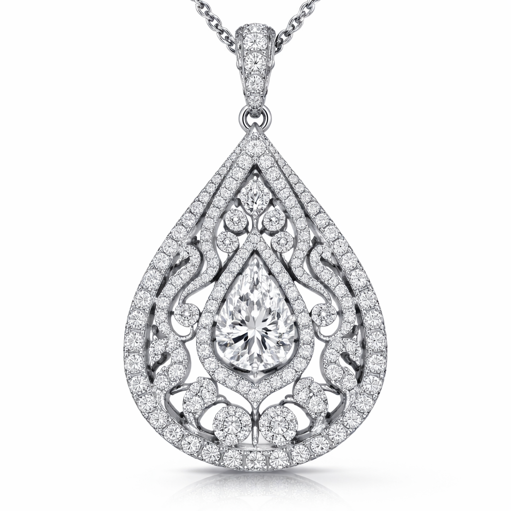 A luxury women's pendant made of silver with diamond stones, luxury style