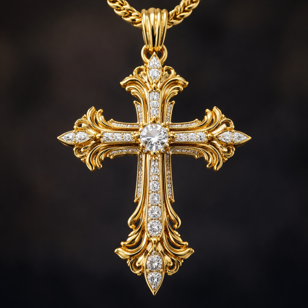 Thin pink sapphire Pavé gold hoops with cross design on the back