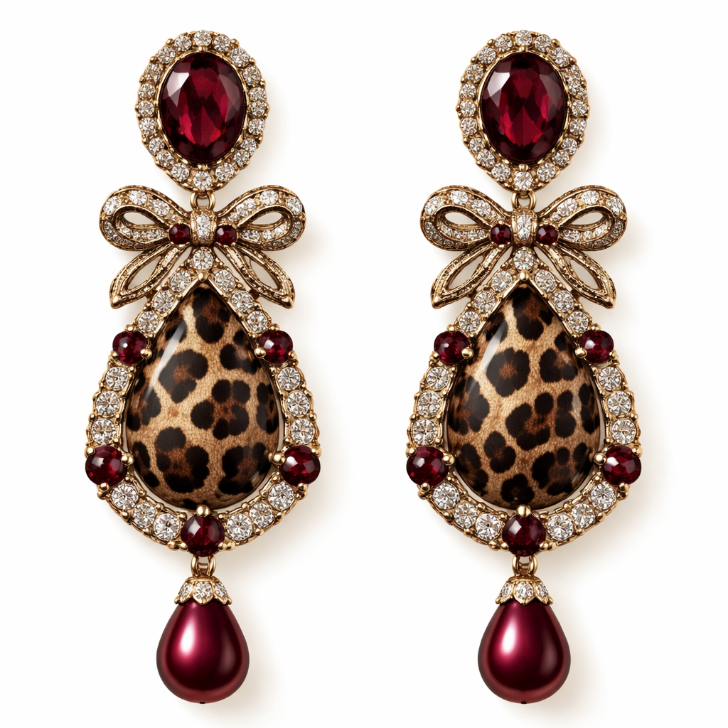 earring related to burgundy and leopard, classic style
