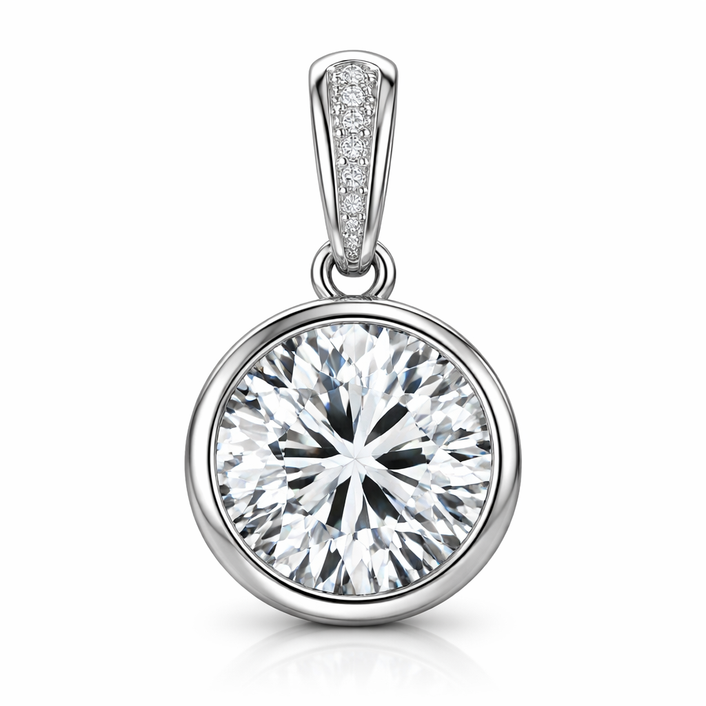 9ct White Gold Round Brilliant 5 carat Diamond Bezel Set Pendant