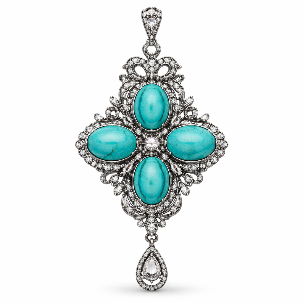 Four 6x4 calibrated oval turquoise cabochons set in silver pendant, georgian style