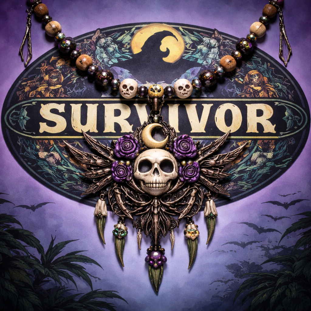 Nightmare before Christmas survivor, immunity necklace with the survivor logo in the background, tribal style