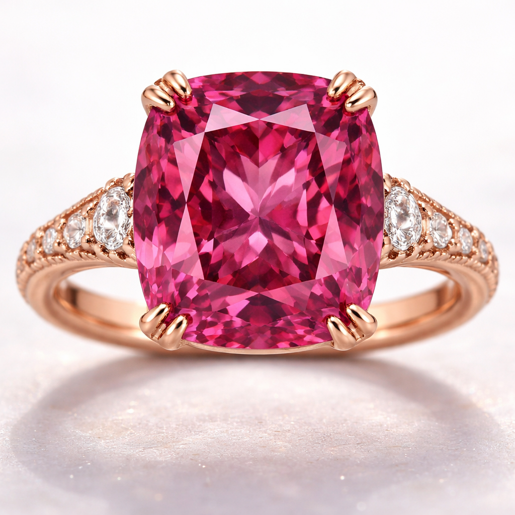 8ct Spinel hot pink centre I wanted it in rose, gold double prong similar setting less diamonds, luxury style