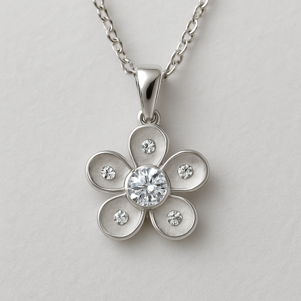 flor gueason con piedras en el colgante plata de calidad