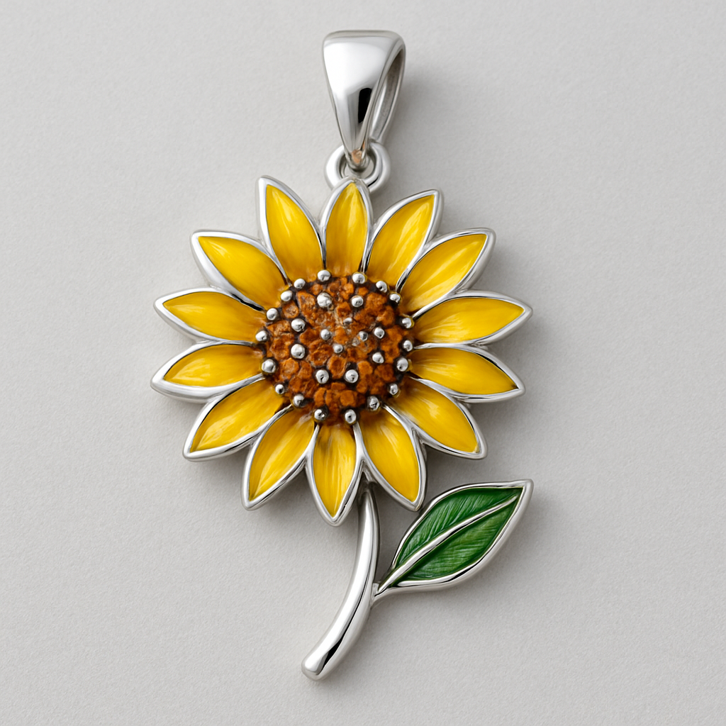flor jirasol con piedras en el bail de plata925 con enamel