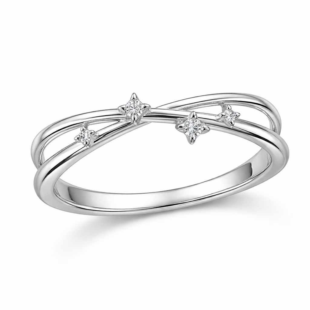 A minimalist women's ring made of silver with diamond stones suitable for daily wear. anel com linhas e estrelas, minimalist style