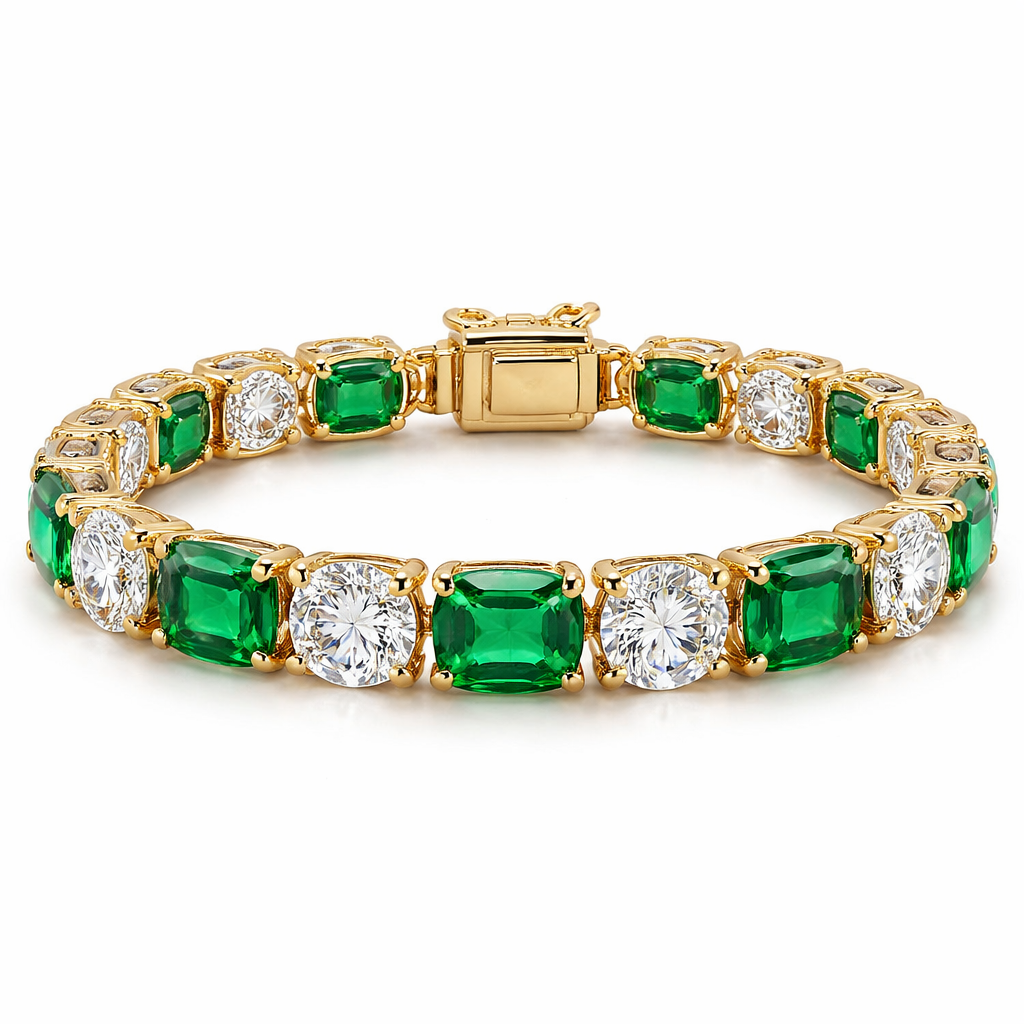 alternating round-cut lab grown yellow gold diamonds and emerald-cut emerald gemstones, stones size 12 in