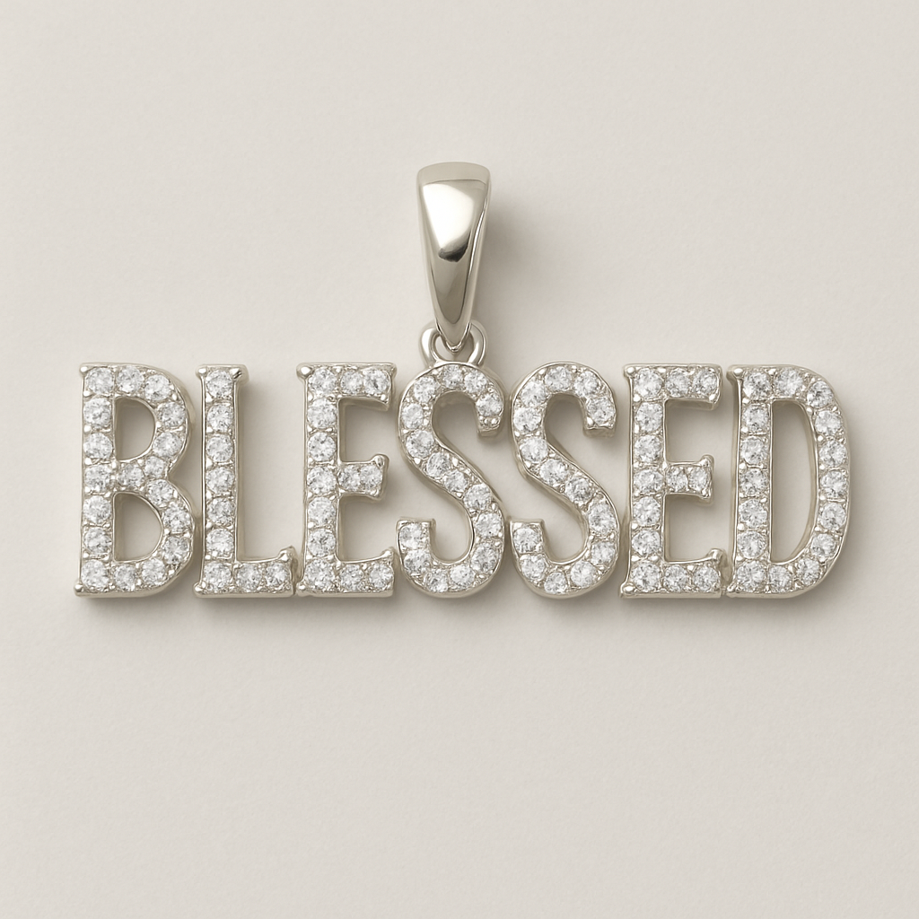 “Blessed ” diamond pave charm no coin just letters, classic style