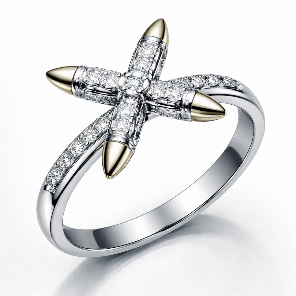 A women's ring. vorrei una croce realizzata con 2 ogive di proiettile, modern style
