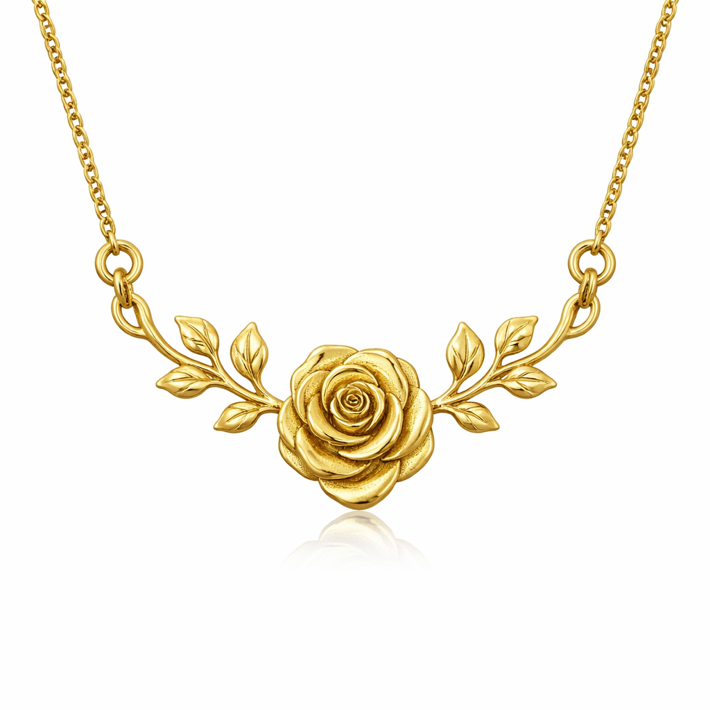 necklace with rose style 2d pattern yellow gold 18k 3 grams maximum weight