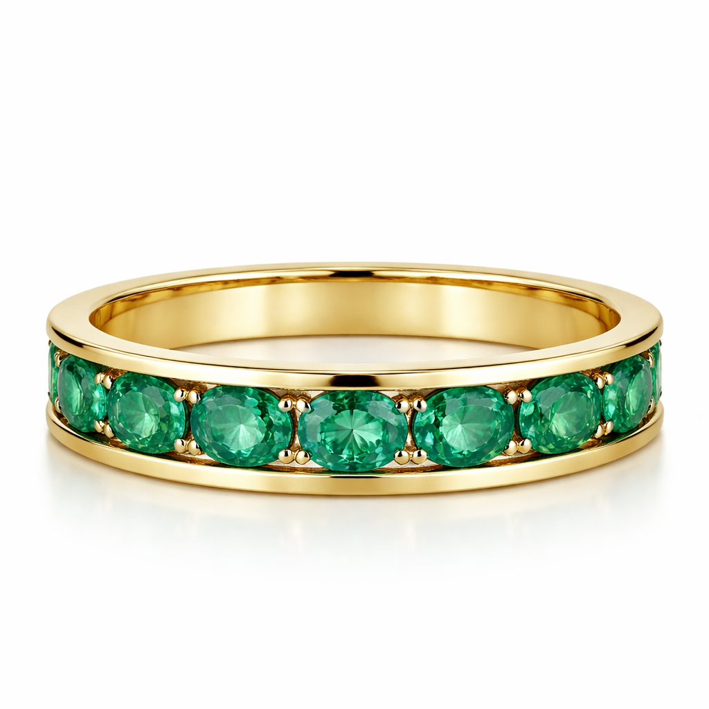 14 karat yellow gold Eternity band with channel set oval emeralds