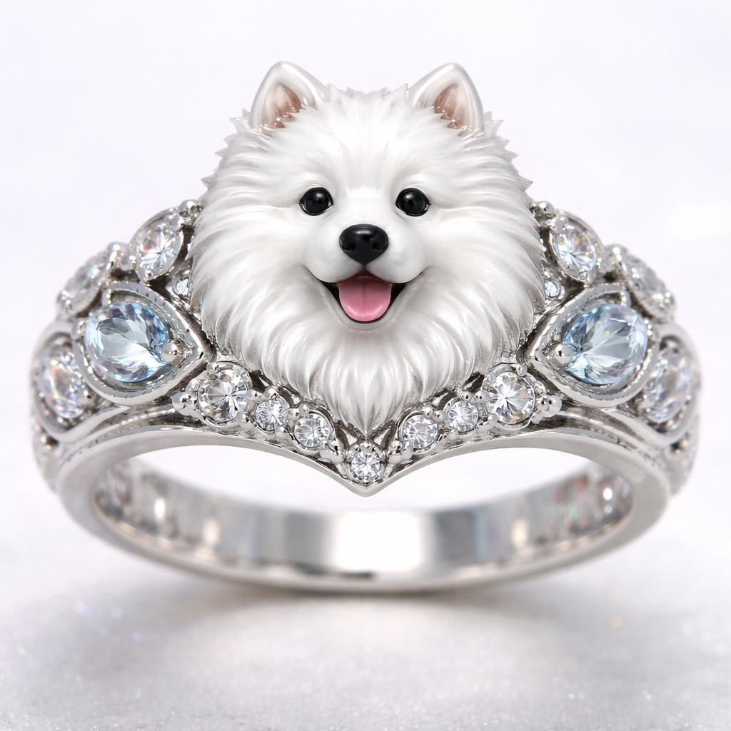 A ring with a samoyed dog on it