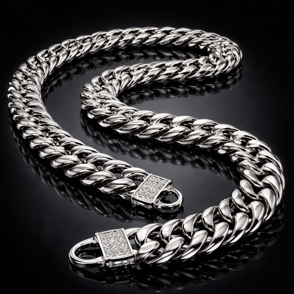 Silver curb chain with double links , luxury style