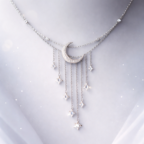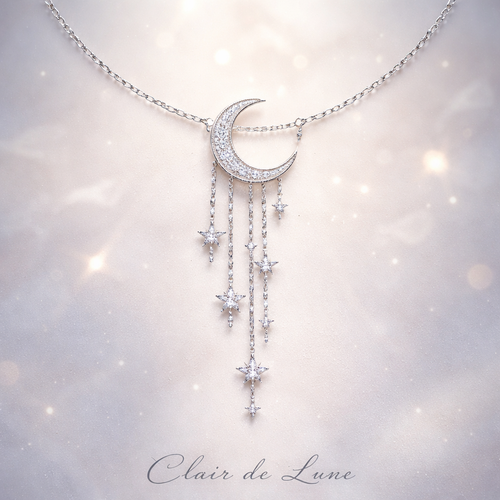 A women's ring. Un collier délicat inspiré de la lumière de la lune, intitulé Clair de Lune. La pièce centrale représent...