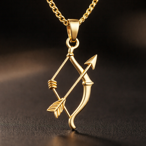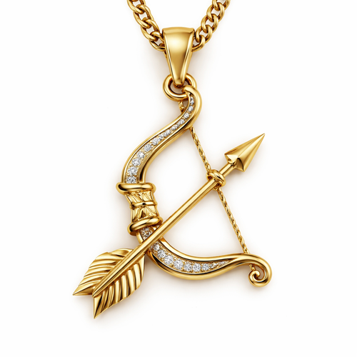 A men's pendant made of gold. A delicate yellow gold pendant use bow and arrow