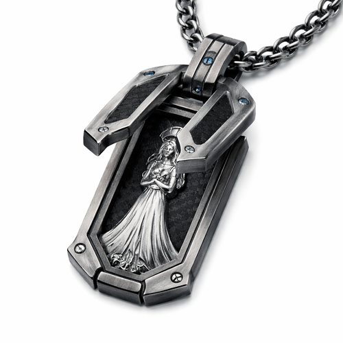 A men's pendant made of titanium. a two layered pendant the bottom has a traditional women structure and the top open an...